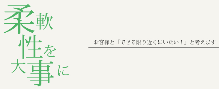それはお客様が素直に言いたいことが言える環境を作りたいから。まさに柔軟性を大事に、そして壁をつくらない環境づくりを私たちは目指しています。